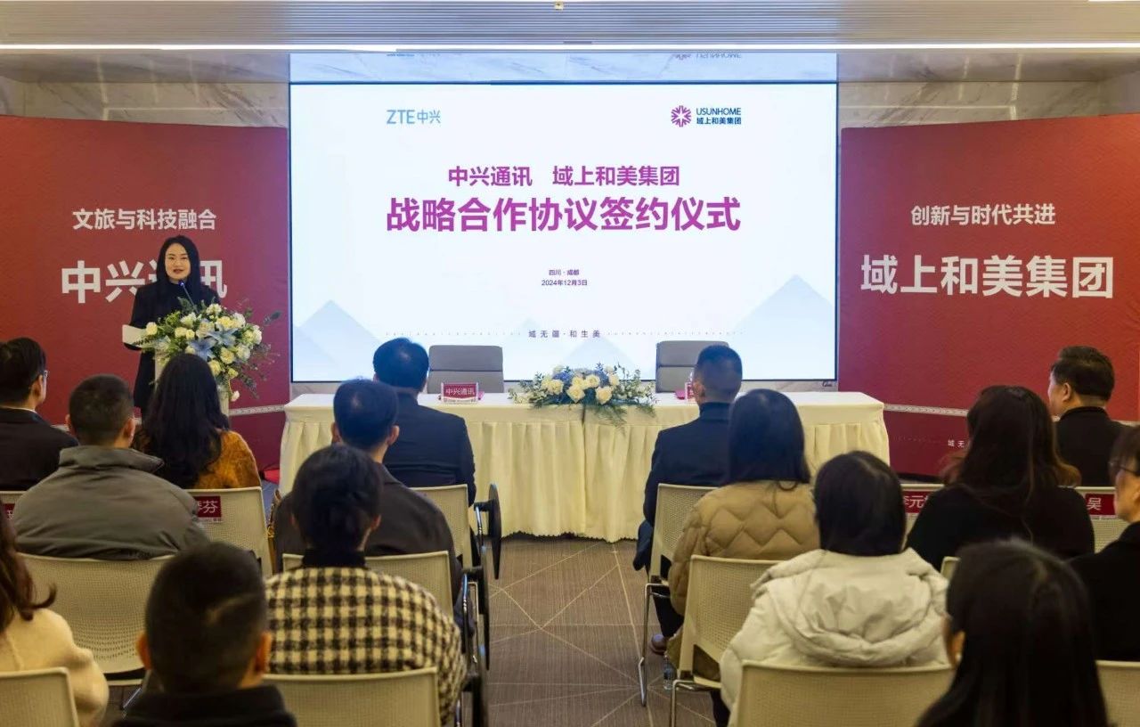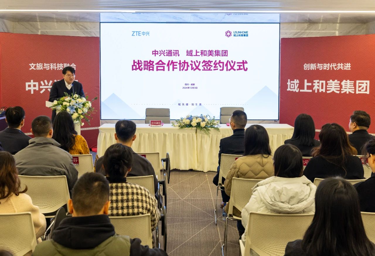 12月3日,域上和美集團(tuán)與中興通訊股份有限公司在成都正式簽署戰(zhàn)略合作協(xié)議,雙方將在文旅科技融合創(chuàng)新領(lǐng)域深度合作,攜手開辟數(shù)字文旅產(chǎn)業(yè)新場(chǎng)景、新產(chǎn)品、新模式。
