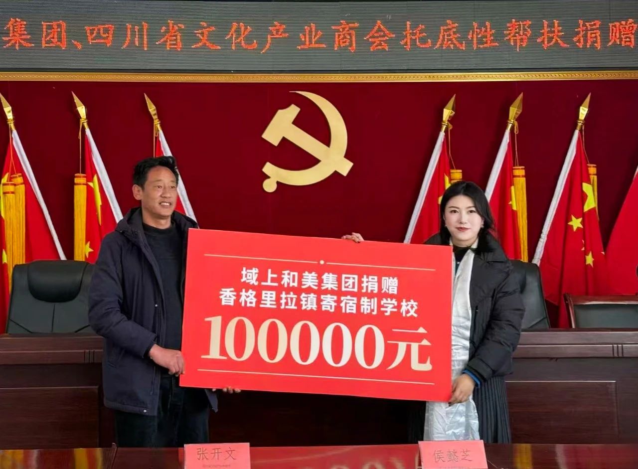 捐贈儀式由稻城縣香格里拉鎮(zhèn)人民政府鎮(zhèn)黨委副書記、鎮(zhèn)長白志宇主持。域上和美集團黨委副書記侯懿芝代表集團捐贈30萬元,主要用于支持香格里拉鎮(zhèn)瓦龍村、日美村溫泉旅游、玫瑰種植等特色產業(yè)培育,同時,集團設立獎學金、助學金,援助寄宿制學校改善住宿條件,惠澤當?shù)貙W子。四川省文化產業(yè)商會積極號召會員企業(yè),捐贈物資價值 3.5 萬元,用于改善學校體育設施,豐富學生文化體育生活。
