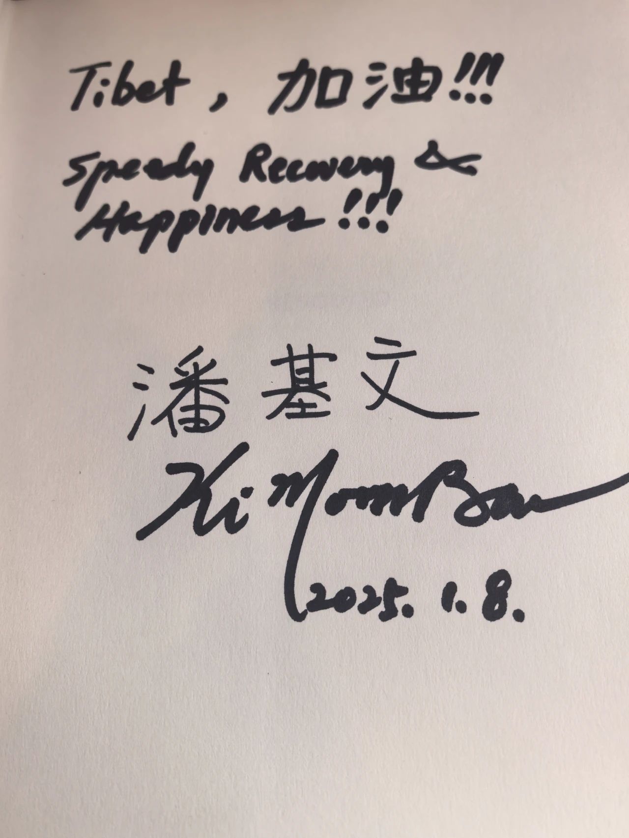 交談中潘基文非常關(guān)心西藏日喀則地震實(shí)況,并寫(xiě)下西藏加油的美好祝福。