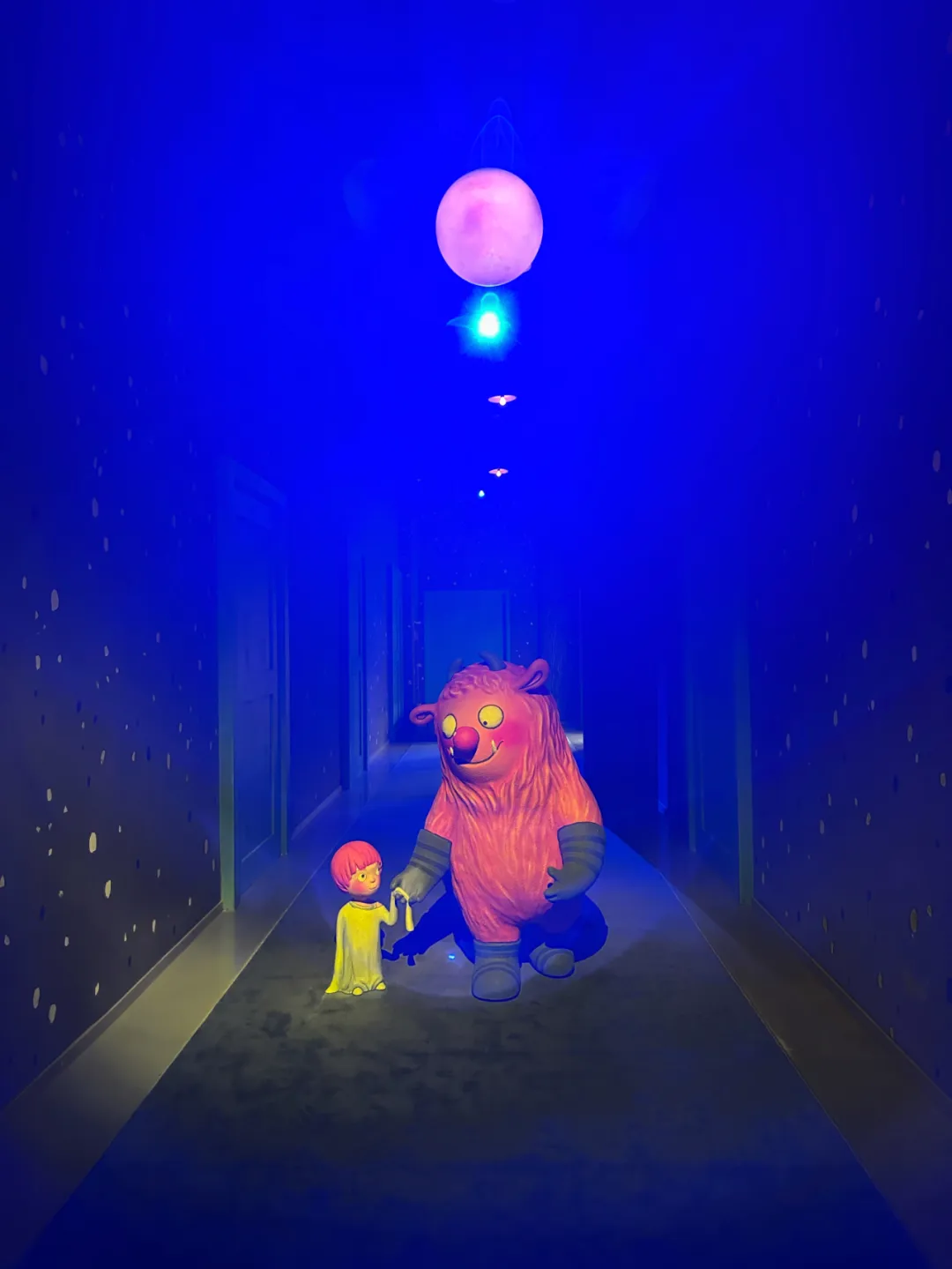 繪本中的原句被投影在地面、墻面或長(zhǎng)椅上,與場(chǎng)景互相映襯?!皦?mèng)境空間”烘托出了故事的神秘感,當(dāng)幾米繪本里的那把傘來(lái)到了現(xiàn)實(shí),印刷時(shí)代的故事在智能時(shí)代重?zé)ㄉ鷻C(jī)。