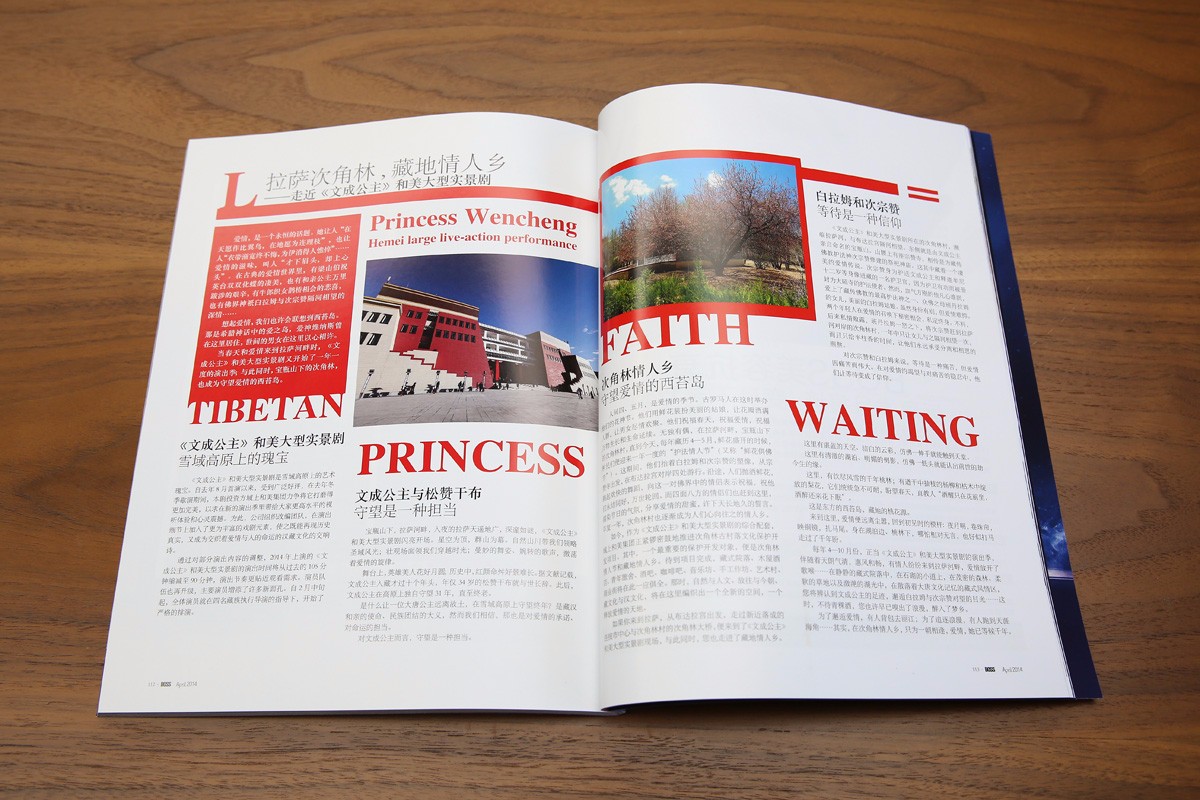 本期在《中國航空旅游》《西藏航空》和《伯仕BOSS》《成都航空》等國內(nèi)各大航機(jī)雜志和《火車》《四川省情》等其他雜志上刊登的文章《拉薩次角林,藏地情人鄉(xiāng)——走近<文成公主>藏文化大型史詩劇》如下